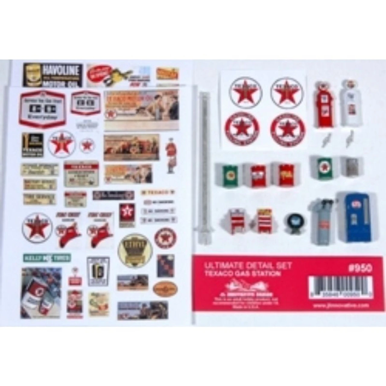 Custom Pre-painted and labeled details, sign sheet and pole sign to complete a Texaco Gas Station Scene. JL Innovative HO Scale Ultimate Detail Set Texaco Gas Station