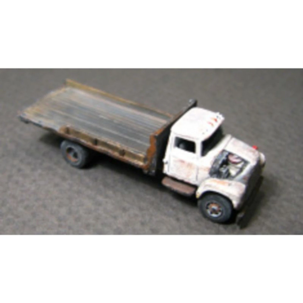 This Distressed Flatbed-I type Cab vintage is that of 1962 and on through to 1980. This cab style when introduced in 1962 by one of the foremost recognized producers of trucks in the US went on to survive in production with minimal style change for more than 2 decades, and today 50 plus years after its debut can still be found in service. Being inspired by this star of load carrying trucks, our Flatbed-I cab type-truck is ruggedly appointed with the kind of wear and tear that you would expect to find after years of service. Although it is “distressed†it can easily continue being used for decades beyond its original manufacture. It will be right at home sitting in the cornfield collecting rust or making a delivery in a congested railroad industrial district. The model comes with standard steel wheels. If you want to customize this work truck further, we offer the Medium Duty Alloy Wheels and the Medium Duty Cast Wheels sold separately. Showcase Miniatures N Scale Distressed Flatbed “I” Type