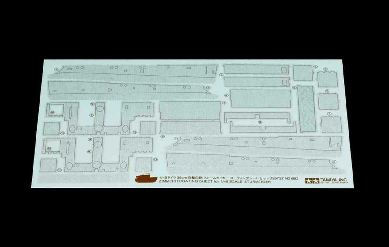 Simulating Zimmerit (an anti-magnetic mine coating used on German vehicles in mid-late WWII) on models using putty enhances the model’s presence but at the same time requires advanced skills and is time consuming. This dedicated sticker sheet enables easier reproduction of Zimmerit on the new 1/48 scale German Assault Mortar Sturmtiger (Item 32591). By applying the stickers on the model and painting over them, a realistic Zimmerit effect can be achieved.