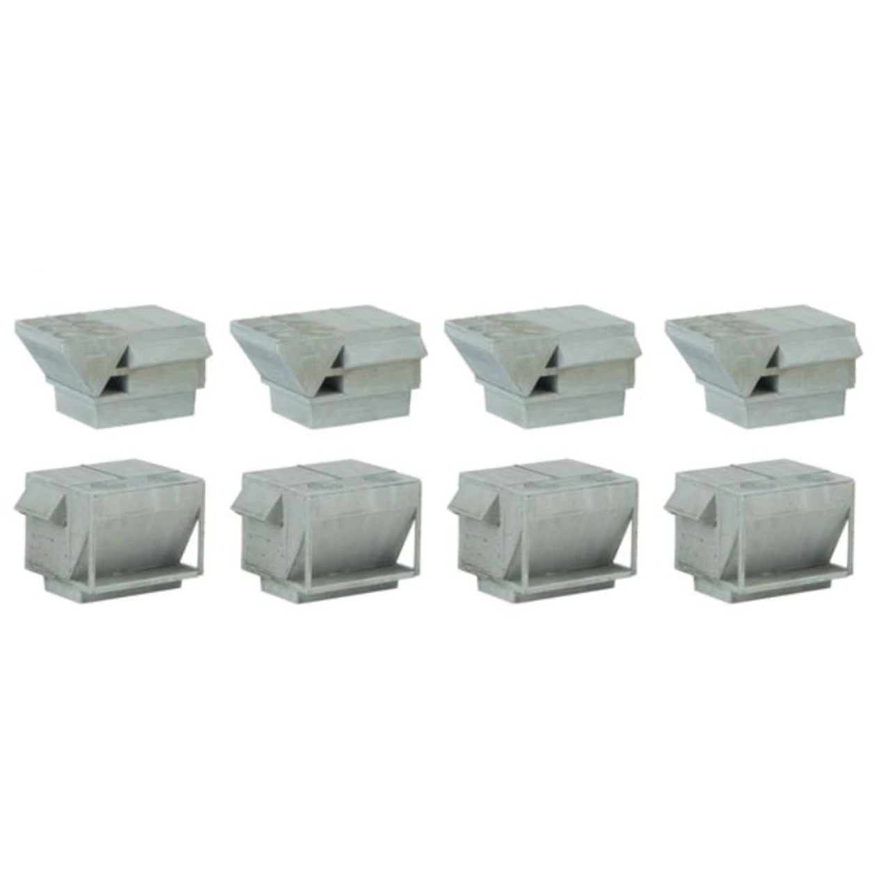 Walthers Cornerstone HVAC (Heating, Ventilation and Air Conditioning) Units are great details for any industrial or commercial building, especially on modern structures built without windows – in these buildings air handling is a must! Modern rooftop air conditioners like these are also installed as part of the upgrades on renovated buildings. This kit includes parts for eight HVAC units – 4 each of two styles. Check out all of the Cornerstone structure details. here! HVAC Units are part of the Cornerstone Modern Industrial Park series - read more here! Great detail for modern or modernized industrial and commercial rooftops Typical of large capacity air conditioners and air handling units used on many industries, businesses and public buildings Perfect for modeling roof- or ground-mounted equipment Two complete sprues with parts for eight units (four each of two styles) Easy-to-build plastic kit Molded in appropriate base color Walthers HO Scale HVAC Units 4 each or 2 Styles