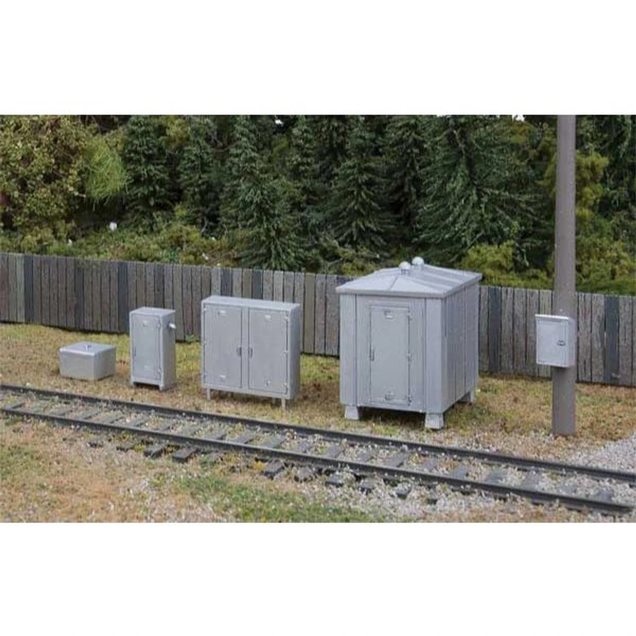 Adding essential details to your steam- or transition-era layout will be fast and fun with the Vintage Trackside Details Kit from SceneMaster! Typical of equipment used by railroads large and small to control signals at crossings, junctions and more, the 20-piece set is a great value with: 2 Signal bungalows 2 Double-door signal cabinets 4 Single-door signal cabinets 4 Battery vaults 8 Telephone boxes (poles sold separately) Easy to build with parts molded in gray Walthers HO Scale Vintage Trackside Detail Set